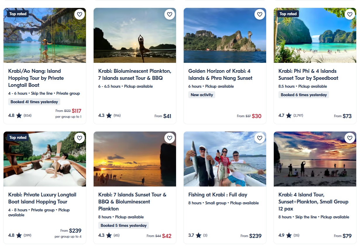 Price: There are long-tail boats that leave from Ao Nang whenever they’re full. They charged 300THB per person for a return trip to Koh Poda. As soon as 6 or 8 people are in the boat, they make the trip. If you can speak some Thai, you may be able to negotiate a better price.
